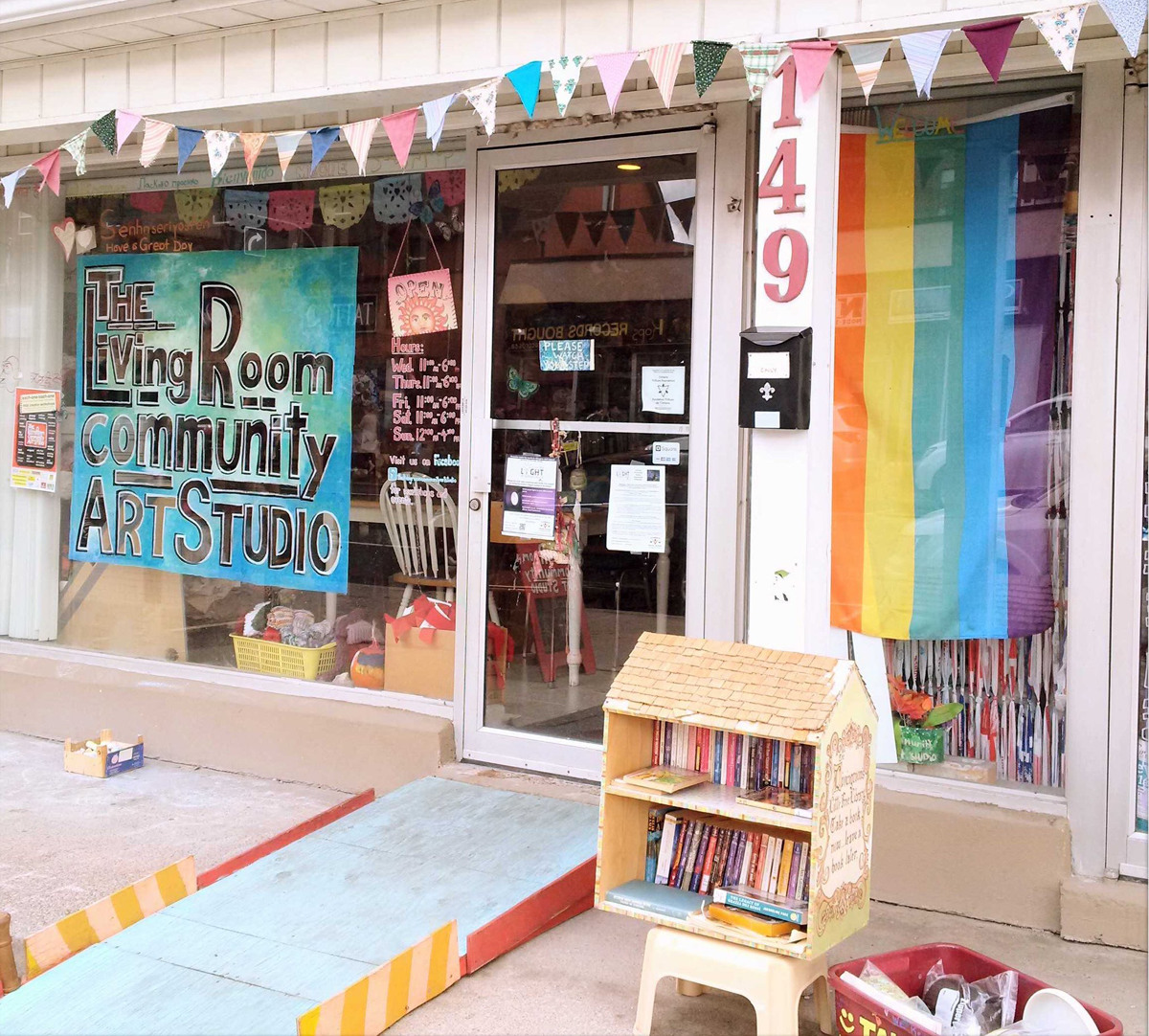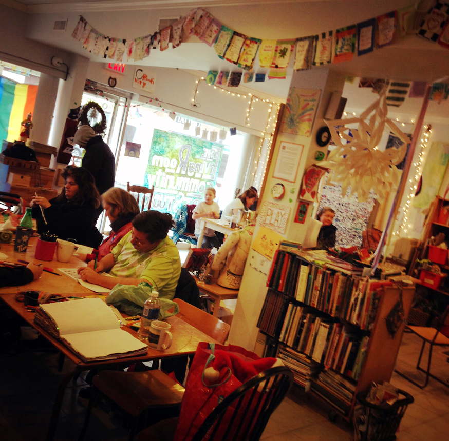 The studio space at 149 Simcoe was a special place...In 2013, the LivingRoom started as a weekly pop-up in a local restaurant that let us make use of their space after they’d closed. With the help of folx like you we opened a bricks and mortar store-front studio space in 2014 where people could walk in, grab materials and tools off the shelf to make whatever they wanted or needed to make in a supportive environment, welcoming around 15,000 visits a year from community members across Durham Region. Through the art we created and the conversations that occurred around the art, we also learned about one another and ourselves. We explored and discovered ways to question, and clarify, resist and support, speak and embody our truths, and be ok with uncertainty and the weirdness of becoming. We discovered that the Art of Human-ing was perhaps the most exciting creative process that we were engaging in, and that the things we made often supported or facilitated that exciting work.